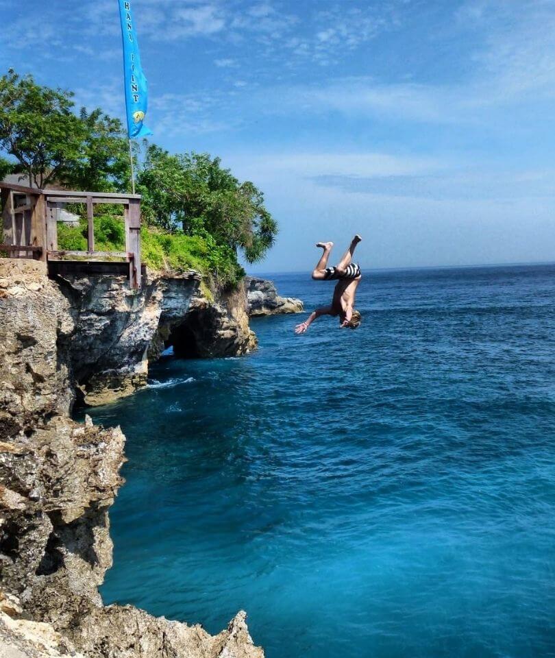 The cliff jump is a popular attraction but it’s also a great spot for sunset drinks and is often quite busy.