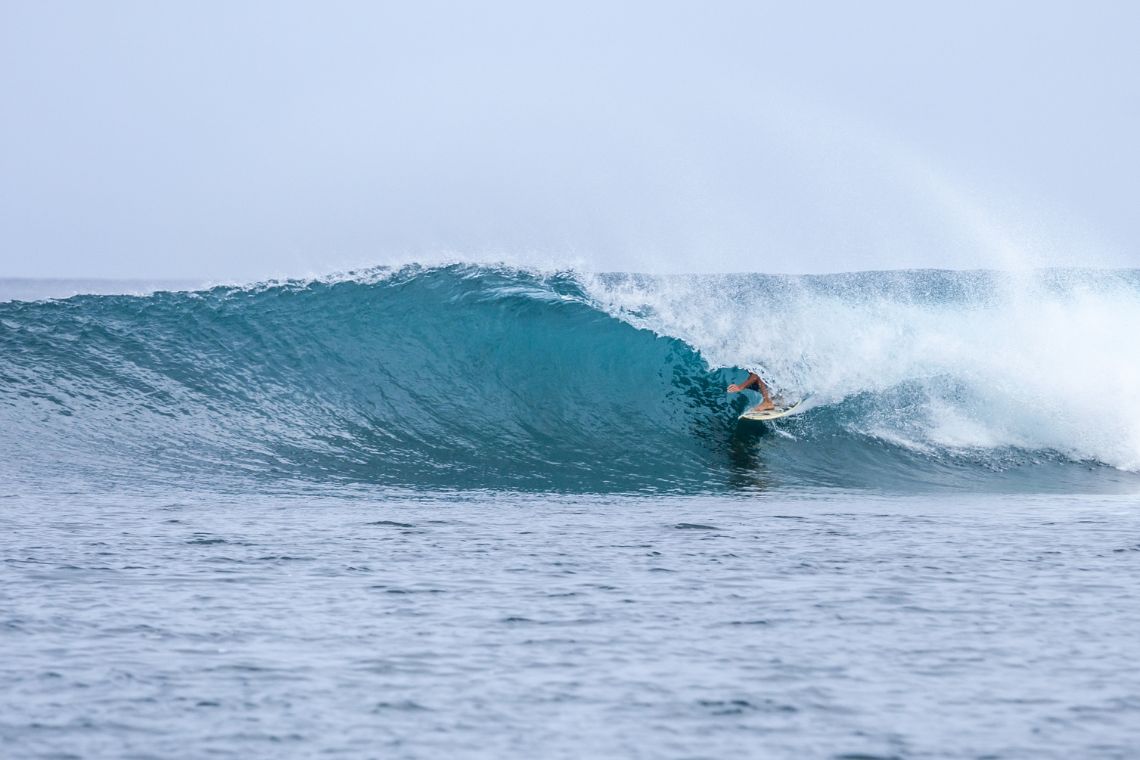 The Peak is Lhonknga’s only A-Frame wave that sits between The Left and Lampuuk’s Right Hander approximately 200 metres off the beach. This wide A-frame rolls gently over the reef in smaller swells, bending around the reef to provide a playful shoulder. On medium to large swells, The Peak is the heaviest wave in the immediate area, pitching into a barrel off the drop, left and right.