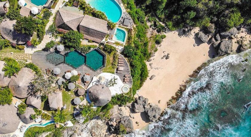 The feel of luxury at an affordable price is what most reviews state, and is certainly music to our ears! Using the natural characteristics of Balinese construction such as high Alang Alang thatched roofs, teak timber beams, cross ventilation and semi-open bathrooms La Cabane provides luxury amenities with the likes of a stunning infinity pool with a view over the ocean. Just a 2-minute walk to the hidden beach Biu-Biu but 1.2km or 16-minute walk to Balangan Beach it is a great place to get away from the beach in between surfs.