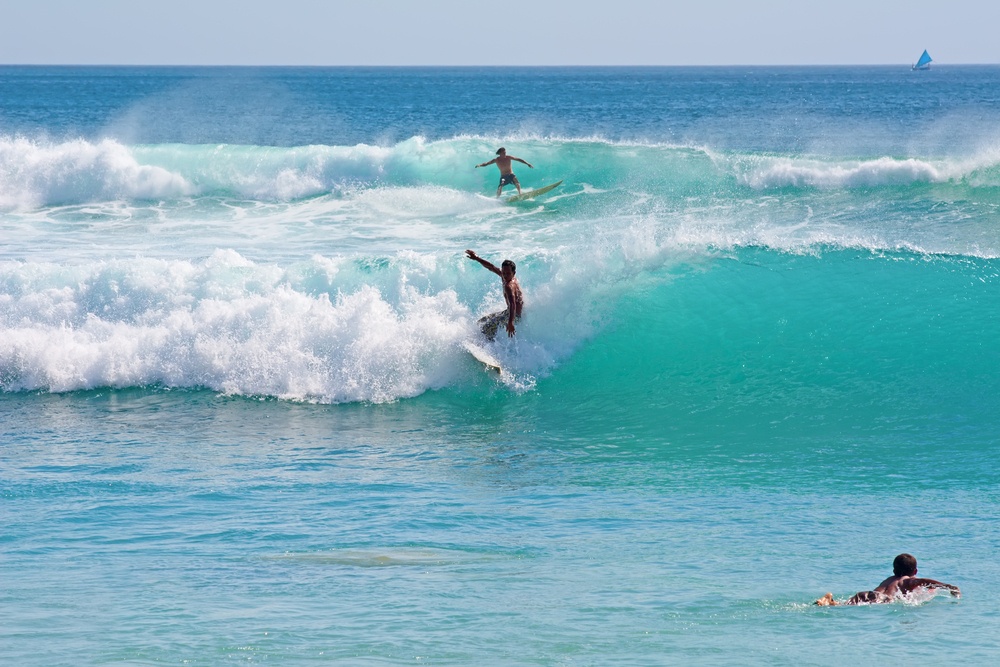 The beach is a mix of soft white sand and exposed rock tidepools. While the beach is beautiful, there are constant buses of tourists arriving to take photos on the beach and dip their toes in the water. This might not be the best spot for die-hard surfers looking to surf their brains out but is great for families, beginners and intermediate surfers.