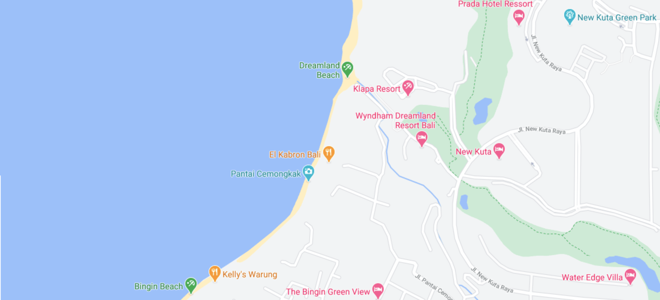 Dreamland is a part of Ungasan Village in the South Kuta District of the Badung Regency of Bali’s Bukit peninsula. The beach is surrounded by resorts that cover a lot of land area where recent luxury resorts are still being built and golf courses have been developed.