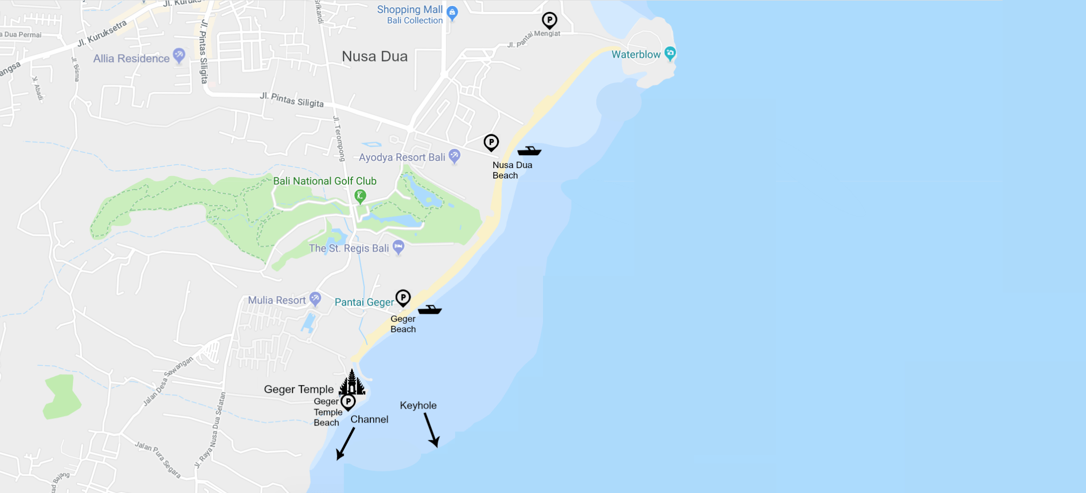 Tips: If you decide to paddle up the reef from Nusa Dua Beach you will most likely be paddling against a current. On the lower tide don’t try and paddle out over the reef anywhere except for the keyhole.