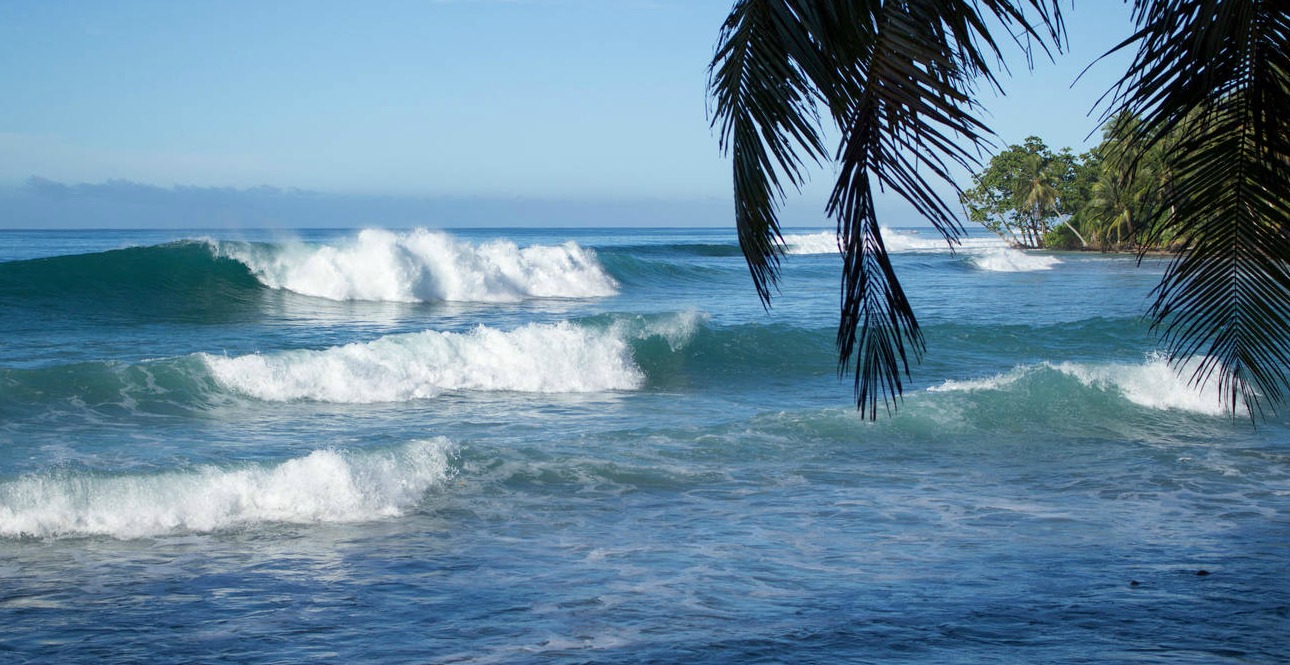 There is a thin strip of palm-tree lined white sand beach which meets jagged reef rock on the ocean edge. From M.I.A. surf camp you can enter the water through a keyhole over the rocky reef and into the lineup.